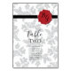 This design features elegant vintage leaf pattern and personalised wax seal image. The damask grey leaf patterned background contrasts against the black ribbon and red wax seal. The combination of grey, red, black and white colours create a sophisticated, trendy and chic style. Elegant wedding table number design with modern elements. The simple setup of the typography gives it a distinct style. Matching wedding invitations and other stationery items are also available. Customise the number and purchase each tables number individually according to how many table numbers you need.