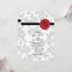 This design features elegant vintage leaf pattern and personalised wax seal image. The damask grey leaf patterned background contrasts against the black ribbon and red wax seal. The combination of grey, red, black and white colours create a sophisticated, trendy and chic style. Elegant wedding invitation design with modern elements. The simple setup of the typography gives it a distinct style. Matching wedding stationery items and other wedding invite formats are also available.