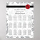 This design features elegant vintage leaf pattern and personalised wax seal image. The damask grey leaf patterned background contrasts against the black ribbon and red wax seal. The combination of grey, red, black and white colours create a sophisticated, trendy and chic style. Elegant wedding seating chart design with modern elements. The simple setup of the typography gives it a distinct style. Matching wedding invitations and other stationery items are also available.