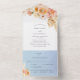 Elegant Peach and Blue Floral Wedding with RSVP Al All In One Invitation