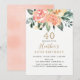 Elegant Peach and Gold Floral 40th Birthday Invitation