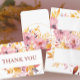Perfect for spring wedding peach and gold colour palettes. Beautiful water colour florals in shades of pink, yellow and orange make these thank yous elegant and beautiful.