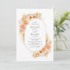 Delight your guests with this elegant Wedding invitation featuring beautiful oval arch with exquisite watercolor floral elements surrounding your wedding details with flowers, foliage and pampas grass in a beautiful blend of peach, orange, blush pink, cream and champagne hues. Ability to change "together with their parents" to "together with their families", "together with great joy" or "together with great pleasure". Back in white, which can be changed to any other "background colour" by selecting "Edit using design tool" button located at the end of template text boxes. Part of our "Peach Floral Delight and Champagne Cream" collection with a variety of coordinating products available. Visit the entire collection at: https://www.zazzle.com/collections/peach_floral_delight_and_cream_champagne-119627301812293761