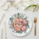 Elegant Peach Bouquet with Diamonds Wedding Paper Plate