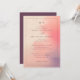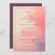 This elegant wedding invitation features a soft gradient background transitioning from warm peach to gentle pink, creating a romantic and sophisticated atmosphere. The design is centered with a symmetrical layout, highlighting the initials "M" and "K" in bold serif font at the top, followed by the names of the couple in an elegant script font. The typography varies in weight and style, guiding the eye through the details while maintaining a refined aesthetic. Perfect for a formal gathering, this invitation conveys warmth and celebration, setting the tone for a memorable event.