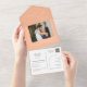 This all-in-one invitation features an elegant calligraphy and simple typography font with an arch shape heading on a peach background and photo and QR Code. The simplicity of this design adds a touch of elegance to your wedding. It works well with many wedding themes and definitely a great addition to your wedding. Just customise the names and wording in a few easy steps and personalise the all-in-one invitation card with your photo of the happy couple and replace the QR Code with yours to give your invitation a nice personal touch. This invitation will save you money to send everything at once. It has a perforated RSVP postcard can be easy to tear off and your guest just sends it to you. Just simply fold each card into the outlined shape -- seal and send to your guests. No envelope is needed for shipping -- just postage.