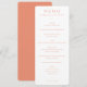 This elegant wedding menu features a minimalist design with a soft peach background, creating a warm and inviting atmosphere. The layout is clean and sophisticated, utilizing ample negative space to emphasize clarity. Serif and sans-serif fonts are used for headings and descriptions, providing a formal yet approachable feel. Perfect for an upscale event, the design focuses on textual elegance without any images or illustrations, making it ideal for couples seeking a refined and classic look for their special day.