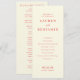 This wedding program features a simple, elegant design with a vertical layout that emphasizes clarity and sophistication. The color palette includes soft peach or light pink as the background, complemented by deep red text for a striking contrast. The typography is clean and modern, using serif fonts to create a formal yet inviting atmosphere. With ample negative space, the design guides the viewer through the ceremony schedule in an organized manner, making it perfect for couples seeking a minimalist and stylish aesthetic for their special day.