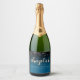 Add your personal brand to your special day with these celebratory simple but stylish wedding champagne bottle labels, which feature elegant handwritten and block lettering in peach with a shower of confetti set on a black to mykonos blue background. Customise as desired.