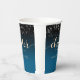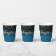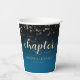 Make your special day an unforgettable celebration with these simple but stylish paper cups, which feature elegant handwritten and block lettering in peach with a shower of confetti set on a black to dazzling oceanic shade of blue evocative of the Mediterranean background. Customise as desired. Reverse shows identical design.