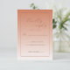 This wedding RSVP card features a soft gradient background transitioning from warm peach to cream, creating an inviting and elegant atmosphere. The design is centred with ample negative space, highlighting the script-like typography that adds a personal touch. Customisable elements include a stylish initial for personalisation and clear RSVP options labelled "HAPPILY ACCEPTS" and "REGRETFULLY DECLINES." The minimalistic approach ensures clarity and ease of use, making it perfect for formal occasions requiring polite interaction.