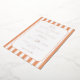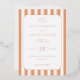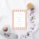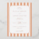 This elegant wedding invitation features a vertical layout with alternating peach and white stripes, creating a warm and inviting atmosphere. The design combines serif and script fonts to highlight the names and details, ensuring readability while adding a touch of sophistication. Customizable elements allow for personalization, making it perfect for celebrating a special union. The overall style blends traditional elegance with contemporary minimalism, ideal for couples seeking a refined yet modern aesthetic for their big day.