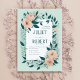 This elegant and modern wedding invitation is perfect for the summer and spring. It features painted watercolor flowers and leaves framed around the typography. The colour scheme includes peach pink, teal green, mint green, and white. It's classy, beautiful, pretty, and unique; the perfect design to impress your guests.