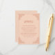 This peach blush wedding details card features elegant corner flourishes and a soft, romantic colour palette. The delicate script header and refined serif text layout provide clear accommodations information while enhancing your wedding suite with a warm, sophisticated touch.