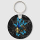 Elegant Peacock and blue butterflies on black Key Ring