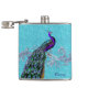 Elegant lady's flask done in a turquoise swirly pattern background, with graphics of a colourful purple and teal peacock sitting on a lavender flourish. Personalise the purple script text to suit your needs. Makes a lovely gift idea.
