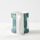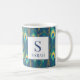 This luxurious personalized mug showcases a rich Art Deco inspired peacock feather pattern in deep navy, turquoise, and metallic gold accents. The stunning design includes a classic framed initial and name. Easily customize it with your name and initial to create a gorgeous monogram gift that elevates any routine. It's the perfect elegant coffee cup for teachers, coworkers, or anyone who loves jewel tones and sophisticated, maximalist decor.