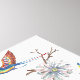 An elegant yet fanciful combination of oriental motifs, inspired by ancient Asian chinoiserie pottery and silk designs, creates a beautiful, whimsical and very colourful garden scene. A peacock, birds, and butterflies play among bamboo lattices and flowering plants against a white background. Printed front and back. Hand painted watercolor artwork and design by Tuzi Williams.