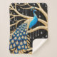 Elegant Peacock Sherpa Blanket with Gold and Blue