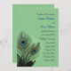 Simply elegant peacock feathers decorate this invitation on a fresh green background. Highlights in the feathers are accentuated with the names of the bride and groom in a deep turquoise. This invitation is shown on the basic paper; however, I recommend the shimmer of the pearl shimmer paper to bring out the iridescence of the feathers. This invitation is part of the full wedding line Elegant Peacock and is also available in turquoise, yellow and purple.