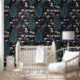 Elegant Peacocks and Magnolia Flowers Almost Black Wallpaper