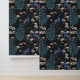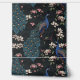 This elegant peacocks and Magnolia flowers almost black Chinoiserie style pattern features hand-drawn blue and teal peacocks perched on Magnolia tree branches in bloom on a stylish almost black background with magnolia bloom silhouettes.