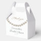 Add a touch of sophistication to your bridal shower with Elegant Pearl Bridal Shower Favour Box. Featuring a classic pearl necklace design and customisable text, this favour box is perfect for thanking your guests with style. Personalise it with the bride's name and the date of the event to make it a memorable keepsake. Ideal for small gifts, candies, or treats, this favour box combines elegance and practicality for your special celebration.