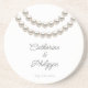 White Elegant Wedding coaster featuring a silver pearl necklace in watercolor. It’s very easy to customise, with details of your personal details.