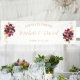 Elegant Personal Names Date White Gold Burgundy Banner. Floral in golden and burgundy on a white background. Text in a golden colour to match the floral design. Text, the couples names and wedding date matches the floral design with the colours Burgundy and Gold. Available in different shapes, colour and sizes.
