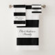 Elegant Personalised Black and White Stripes Bath Towel Set