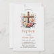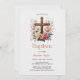Honour the blessed occasion of your baby girl's baptism with this elegant and traditional invitation. Featuring a beautifully designed cross surrounded by soft pink and cream flowers, this personalised card is perfect for celebrating your daughter's special day. With a focus on Catholic and Christian faith, this invitation provides all the important event details, including the church ceremony and reception. Perfect for families seeking a meaningful and timeless way to announce this religious milestone with loved ones.