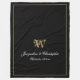 Elegant Chic Black Personalised Newlywed Keepsake Monogram Fleece Blanket. Personalised black and gold monogrammed Fleece Blanket. Classic romantic script for the initial, the names of the bride and groom, and the wedding date on a simple elegant black background. A perfect gift idea for a wedding gift, a newly weds gift, a cherished reminder of their special day or a housewarming gift, or a gift for your own home. Click personalise this template to customise it with your names, monogram initial, and date quickly and easily. Matching monogrammed items and different sizes in Wedding Gifts Collection in my store. 30 Day Money Back Guarantee. Ships Worldwide Fast.