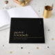 Introducing our Elegant Personalised Wedding Reception Guest Book, meticulously crafted to add a touch of sophistication to your special day. This custom guest book serves as a cherished keepsake, seamlessly blending into your wedding reception, engagement party, or bridal shower. With its sleek hardcover design and black and gold colour scheme, it exudes timeless beauty and modern minimalism.