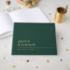 Crafted with attention to detail, this hardcover wedding album serves as both a signing book and a photo guest book, capturing memories from your engagement party to the wedding day itself. Its emerald green and gold accents exude modern minimalism, making it a standout piece in any setting.