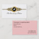 Elegant pet grooming business cards with simulated gold metallic accents, a poodle dog silhouette symbol, and beautiful text in fancy script on the front, with all your pertinent contact information on the back you can customise to your liking. Designed for a pet groomer, pet salon, or pet care service.