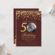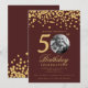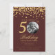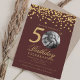 Elegant Photo 50th Birthday Gold Confetti Burgundy Invitation