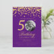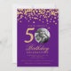 Elegant Photo 50th Birthday Gold Confetti Purple Invitation