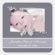 Elegant Photo Birth Announcement Silver Ribbon Square Sticker