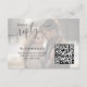 This elegant wedding RSVP card features a timeless black and white photo template with stylish calligraphy script and minimalist typography for a clean, modern look. Designed with simplicity and sophistication in mind, it includes a convenient QR code linking directly to your wedding website, making it easy for guests to reply. A perfect blend of form and function, this simple RSVP card adds a personalised and refined touch to your wedding stationery suite.