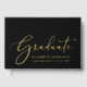 Modern black graduation party guest book for family and friends to leave advice and wishes for the grad featuring your choice of real gold, silver or rose gold foil, "Graduate" in an elegant script and their name, school and class year in simple typography. Customise your text on the spine and add a photo on the back cover.