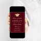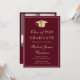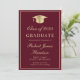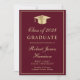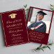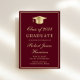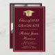 Elegant burgundy red college graduation party invitation featuring a gold grad cap, the graduate's name and class year in a gold script, and their school, major and honours in classic gold typography. On the back, add a photo and personalise your party details.