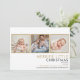 Spread the joy of a Christmas birth with this elegant modern holiday birth announcement card. Personalise the front with your special 3 photos, baby's name and birth stats, and holiday message. The reverse features pretty falling snowflakes frost background. Designed by Thisisnotme©