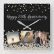 Elegant Photo Collage Gold Silver 25th Anniversary Square Wall Clock