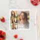 Elegant graduation party napkins featuring the graduate's photo overlayed with a strip of three smaller square photos and "Graduate" in a modern script and their name and class year in simple typography.