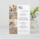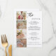 Celebrate your special day with this elegant photo collage wedding menu card. Featuring romantic couple moments and a minimalist layout, it beautifully presents your starter, main course, dessert, and beverage options. Perfect for modern weddings, this customizable template allows you to add your names, date, and location for a personal touch. Ideal for receptions, rehearsal dinners, or destination weddings.