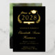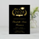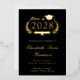 Formal black college graduation announcement featuring genuine foil (choose between gold, silver or rose gold), "Class of" in an illustration of a laurel wreath incorporating a grad cap topper and diploma, and the graduate's name in an elegant script. Add their school, major, honours or future plans in classic serif typography. Their photo fills the back of the card.