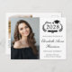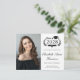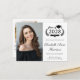 Modern college graduation announcement postcard featuring the grad's class year, an illustration of laurel wreath, a grad cap topper, a diploma, a photo of the graduate and their name in an elegant script. Add their school, major, honours or future plans.