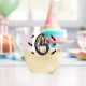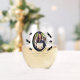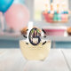 The design presents a unique and charming one that features an elegant oval-shaped display. This display highlights a photo, accompanied by a personalisation field and adorned with black graduation cap and diploma artwork. This distinctive and enjoyable design serves as an ideal graduation party favour or gift.