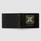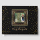 Create your own monogrammed black and gold graduation party guest book with personalised photo- Elegant, sophisticated black and gold frame displays a square, personalised graduation photo. Black and faux gold metallic inner and outer border with gold glitter in the centre and gold metal look scrolls in the corners. Against a black background. Personalised with guest of honour's name in elegant, black script at the bottom in gold colour. Graduation year and name of school printed above. Reads 20XX Graduation Guests in gold on the spine, with custom text template to customise graduation year. Front and back sides scattered with faux gold foil confetti dots. Matching black and gold confetti look background on back and spine. Perfect if your school colours are black and gold. Complements gold graduation party themes as well as elegant graduation parties. Perfect for 1920s theme Art Deco Great Gatsby graduation parties, too.Notice: No actual glitter, confetti, or metal. All images are printed. Click Customise option to change text colours, size, and font styles or placement. Easy to customise for any special occasion or function such as wedding shower, retirement party, baby shower, milestone birthday party, etc. Visit my Zazzle.com/angela65 shop for matching black and gold confetti graduation party supplies and other monogrammed graduation guest books.