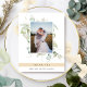 Elegant photo wedding thank you flat card with exquisite watercolor greenery showcasing your image. Beige tan stripe showcasing thank you message. Back with beautiful greenery monogram with couples initials. Ability to receive cards with your own printed message on the back or to erase our message and receive the back in black so you can hand write an individual message later on. Eucalyptus greenery in a beautiful blend of green, blue and beige yellow tan hues. Part of our "Elegant Greenery Eucalyptus Wedding and Events" collection with a variety of coordinating products available.